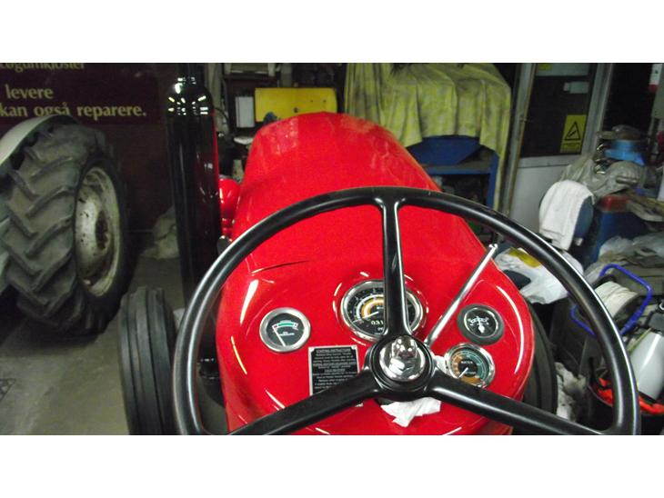 Massey Ferguson 65 MK2, som er sammensat af tre forskellige traktorer, hvor den ene traktor, havde en hel motorhjælm , hvor de fleste ellers er savet over, hvor batteriet sidder, da man havde førehus på, for ellers kunne man ikke tanke eller fylde vand på og komme til batteriet.Alt er renoveret, og det stor leje ved kron og spidshjul, er skiftet, ledningsnet, som jeg selv laver, og hertil har jeg det gamle kreptape som jeg vikler med så ligner det det som var fra ny, og nye dæk